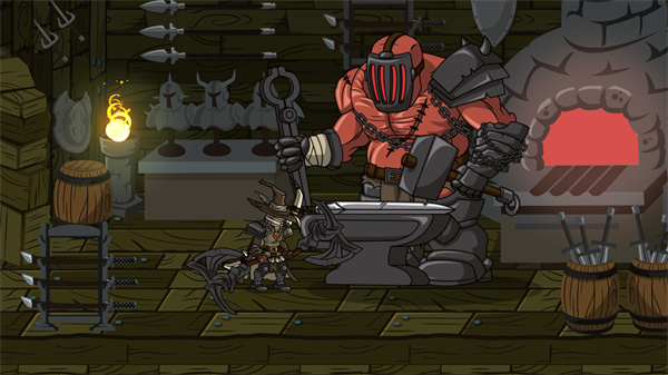 装备系统包含1个铠甲位、1个主武器位、1个辅助武器位(如弓箭或魔法)及3个饰品位。武器种类丰富,包括双剑、剑盾、大剑、大锤、武士刀、长矛等,不同武器在伤害输出、体力消耗与连招逻辑上各有差异,可通过宝箱获取或商店购买。