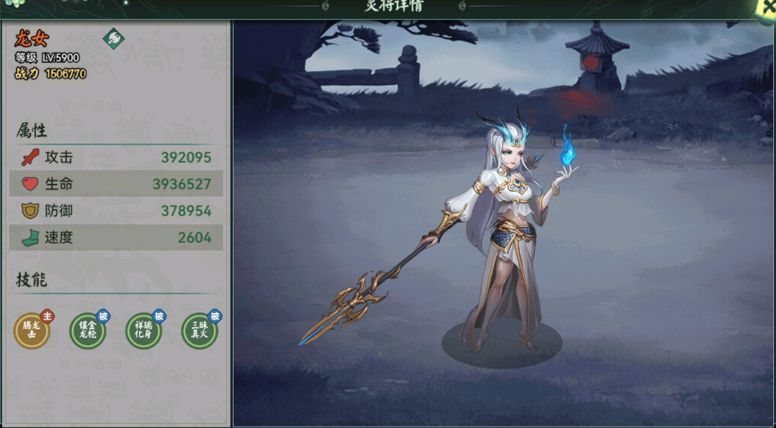 核心技能:「妖魔斩灭」对妖族灵将有额外伤害,副本可用。