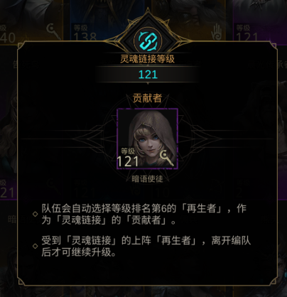 为降低培养成本,游戏设有「灵魂链接」功能:系统自动选取你所拥有英雄中等级排名第6的再生者作为贡献者,所有上阵且等级低于该贡献者的再生者将自动提升至其等级,不受自身上限限制。