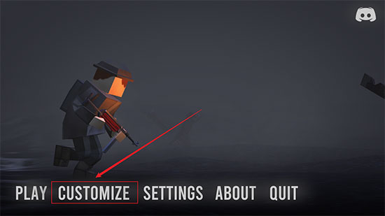 1、进入游戏主界面后,点击【CUSTOMIZE】进入装备配置页面。