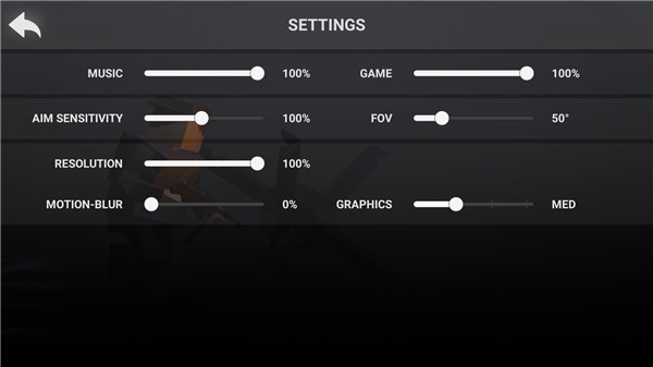 3、通过【Settings】调整音效、画质及操作灵敏度等系统参数。