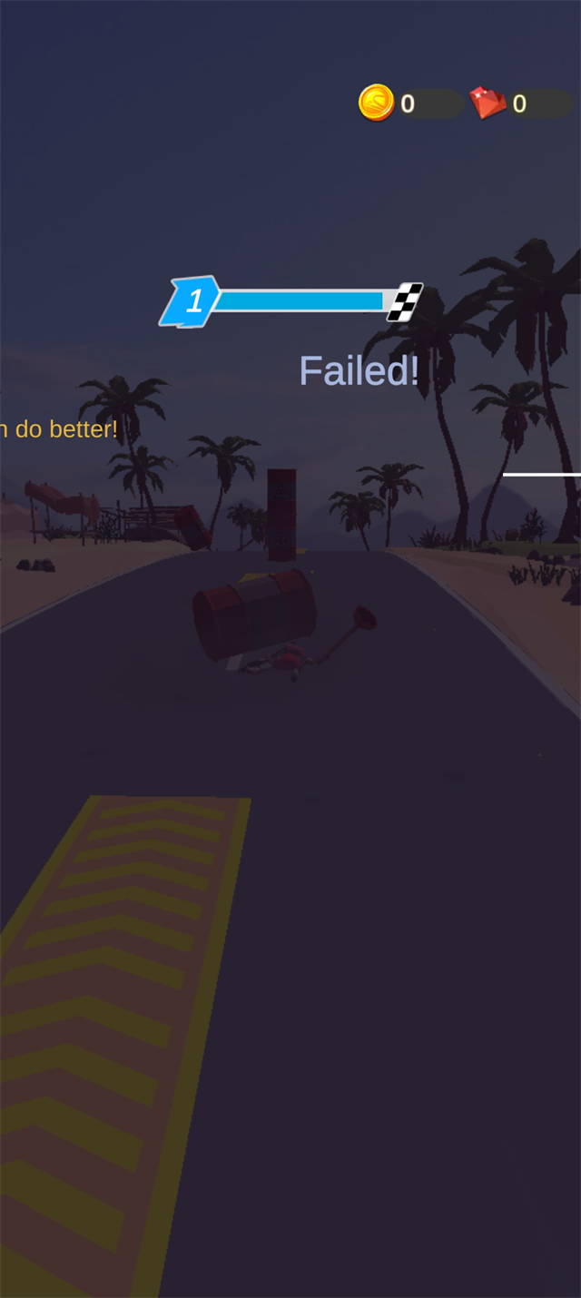 4、务必注意躲避路障与陷阱,一旦撞击严重,将导致车毁人亡,直接结束当前比赛。