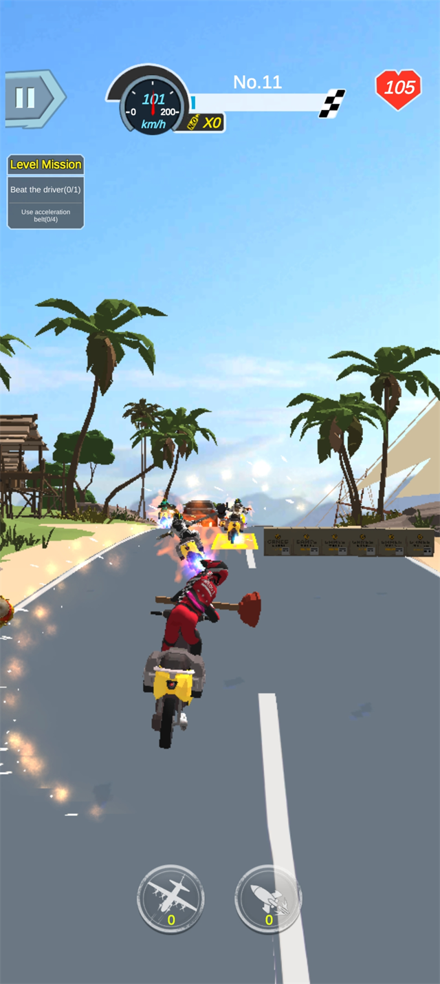 1、竞速+格斗双核玩法:突破传统赛车框架,将激烈搏击融入高速骑行,边飙车边战斗,体验前所未有的“暴力”竞速快感。