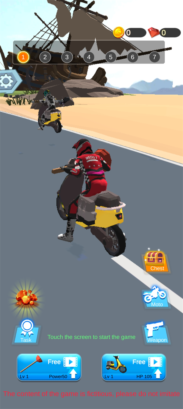 1、启动游戏后,点击屏幕即可进入赛道,开启你的公路救赎之旅。