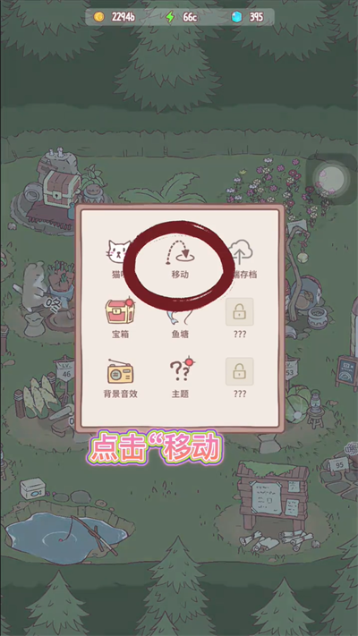 2. 点击场景中的可交互物体,开始打造你的猫咪基地;