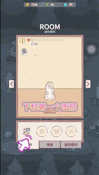 1. 点击任意一只猫咪,再点击弹出窗口中的“猫”图标;