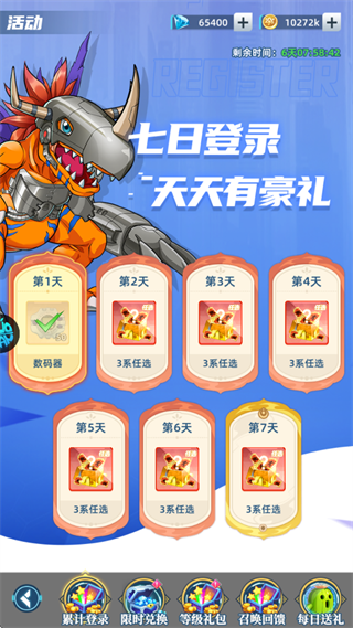 - 连续七日登录可任选三系究极体数码宝贝,打造专属终极阵容。