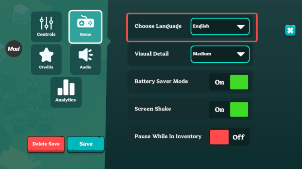 2. 在“Game”分类下找到“Choose Language”选项;