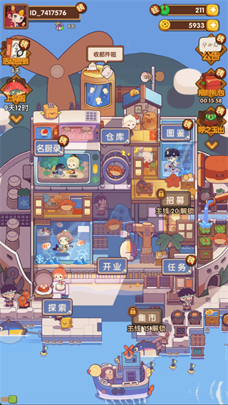 3、解锁「开业」功能后,即可正式开启餐厅营业,通过售卖菜品赚取金币,并逐步开放招募、集市等进阶玩法。