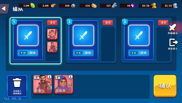 (1)在科技面板右下角点击“编队”按钮,进入编队界面。上方三个带武器图标的框代表可编辑的编队槽位(向右滑动可查看第四个),点击下方士兵即可将其加入对应编队。