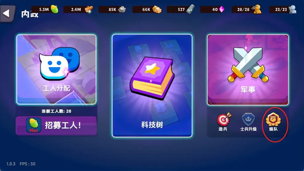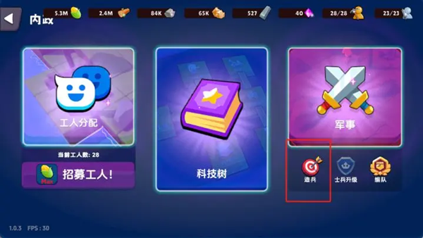 (2)也可通过科技面板右下角的“造兵”按钮快速进入训练界面。