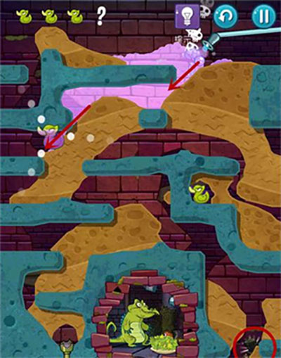 - 轮胎堆汉克:大顽固的轮胎堆看起来松软可口。获取位置:下水道第14关,屏幕右下角(见图红圈标注)。