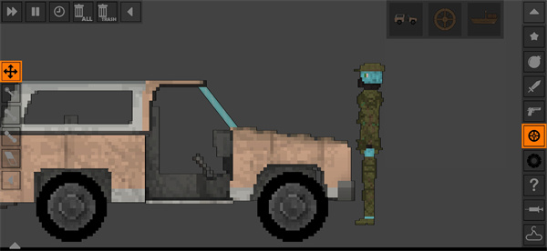 2、游戏右侧集成所有可选物品与角色,玩家可自由调用各类资源;