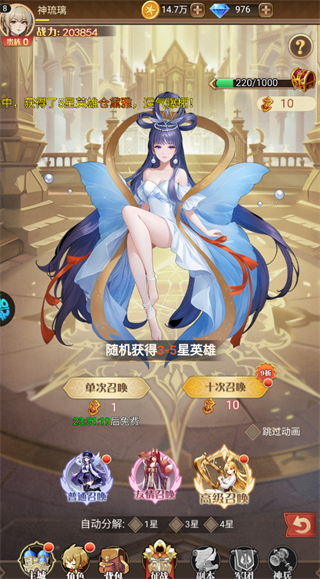 通过高级召唤(单抽或十连)获取3至5星英雄,同时设有普通召唤与友情召唤等免费途径,是扩充英雄池的核心方式。