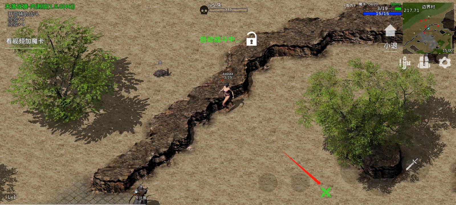 5、点击下图所示按钮,可开启自动战斗模式,轻松应对重复战斗;