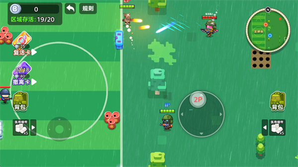 4. 双角色协同操作 支持单人或双人模式,玩家可同时操控两名角色——滑动左侧屏幕控制1P,右侧控制2P,实现火力互补与战术配合,但需注意资源消耗同步增加。