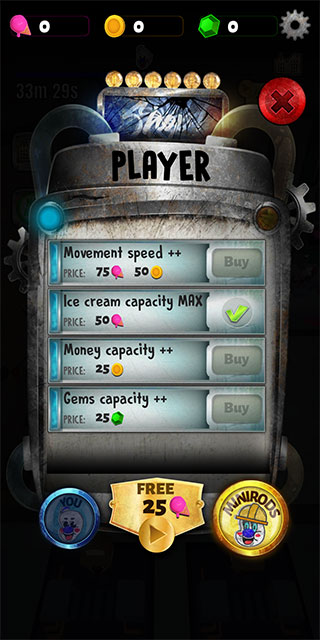 3. 在柜台界面中,四项升级选项依次为:移动速度、最大可背负冰淇淋数量、最大可背负金币数量,以及最大可背负绿宝石数量,合理分配资源可显著提升运营效率。
