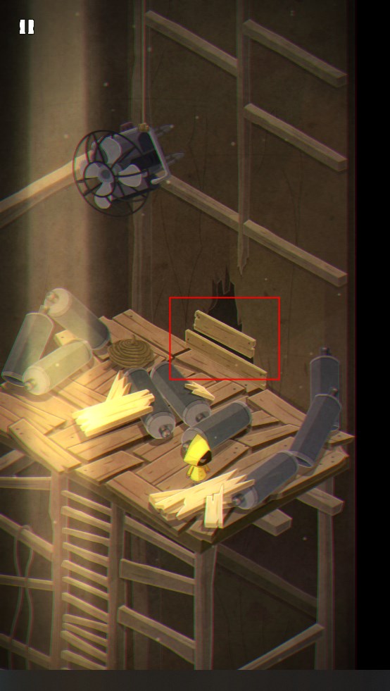 5. 抵达顶端后,掀开图示木板,继续推进。