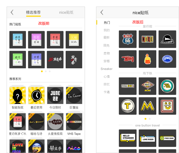 3.添加贴纸:同样,重点依次是:热门>历史>最新>分类