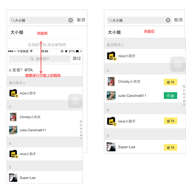 4.人物标签:搜索之后@相关人,逻辑和页面跳转上有些混乱