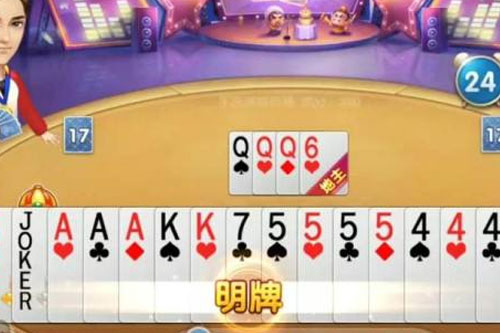 所谓明牌,指的是在游戏过程中玩家将自己手中的全部扑克牌都展示给其他两位玩家查看,至始至终都以一种明示的方式进行游戏,其他玩家可以实时查看你手中的牌,