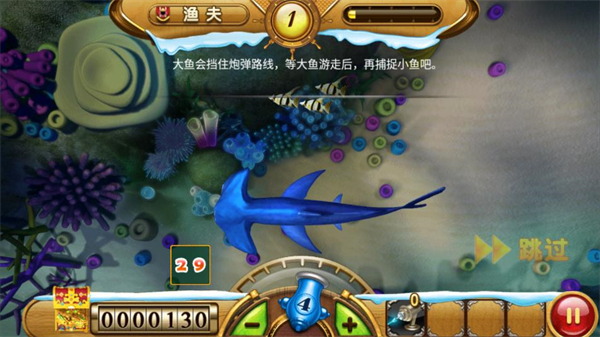 4、大鱼会挡住炮弹路线,等大鱼游走后,再捕捉小鱼吧。