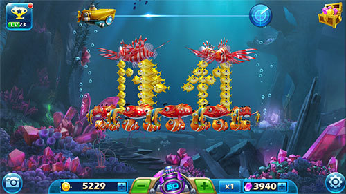 在这神秘的深海,每时每刻都会触发不同的事件。如果,你还在单纯的放炮捕鱼,那可就显得有点OUT了。没看见那条正游过来的美人鱼,说不定你就是她正在寻找的王子。那个鲨鱼看起来好凶恶,性格如此暴躁,原来是要找个牙医解决下它的蛀牙问题。听说深海里还有稀有的灯笼鱼,抓一个来给我们瞧瞧!如此一天下来,海洋生活真是忙碌且又多姿多彩啊。
