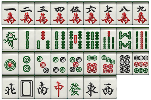 东、南、西、北、中、发、白,这七种麻将牌牌面都是文字,因此称之为“字牌”,每张字牌都由四张相同的牌组成。