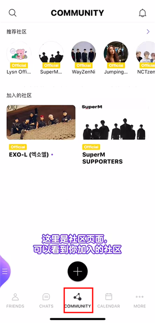 2、注册完成后,点击“官方社区”。
