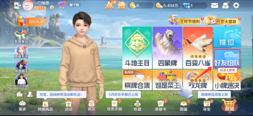 1、启动游戏,在主界面选择"好友组队"功能进入多人游戏模式(位置参考界面指引图)。