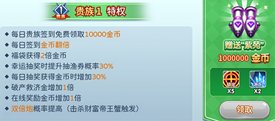 1、在梦幻捕鱼主页面,点击左侧的贵族特权;