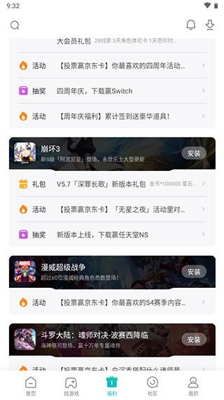 1、【我的游戏】“我的”页面全新升级,在玩游戏福利快捷领取、社区动态不错过。
