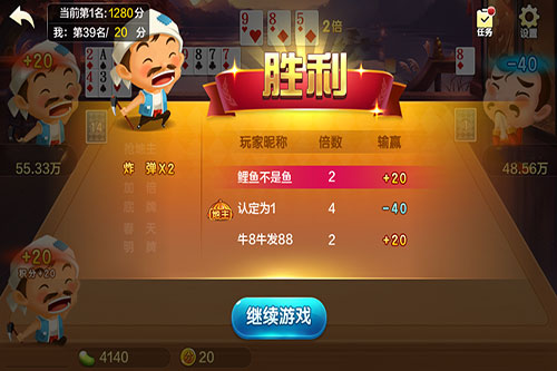 3.斗地主:三人游戏,一名玩家作为地主与其他两名玩家进行对抗,首先出完手中牌的玩家获得胜利。