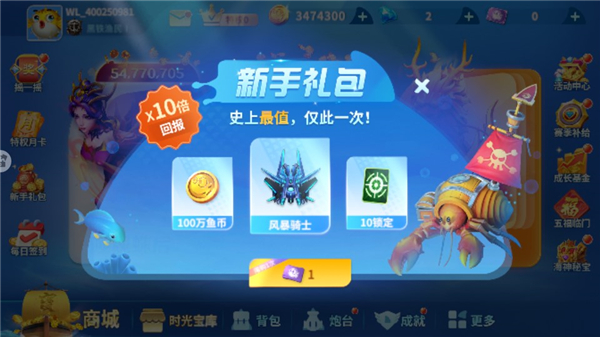 新手上线即赠千倍炮台,挂机十分钟即可解锁20万倍巨炮,更有丰富的福利活动任你挑选,金币、水晶、稀有道具、战神、女武神……通通免费得!