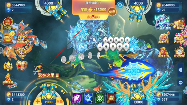 2、全新的自动捕鱼和极速捕鱼,同时升级了独创的炮塔体系,让玩家彻底解放双手,享受捕鱼的惊喜过程,超高的金币和奖励,更是轻松的拿到手软,游戏的场景画面,也会无比的炫酷。