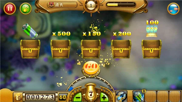 2、选择合适的捕鱼炮和倍数,根据自己现有金币量力而行;