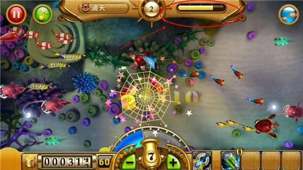 捕鱼达人里面有能量槽,满了之后会出现转盘,随机获得一些奖赏。
