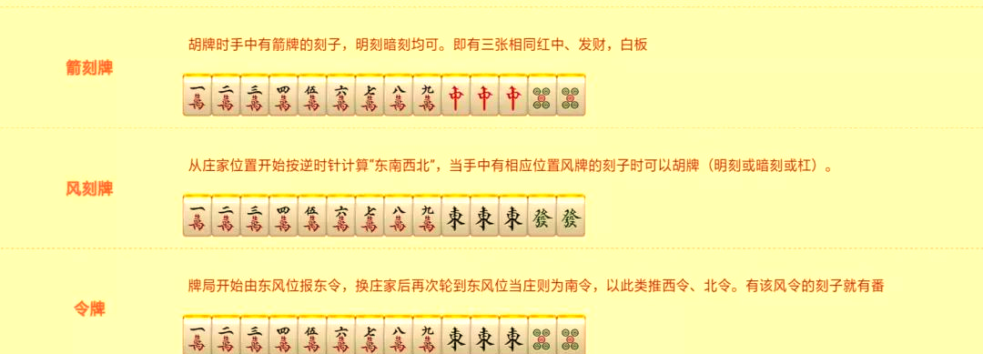 ④箭刻牌:刻牌中包含东南西北风,形成特定的牌型。