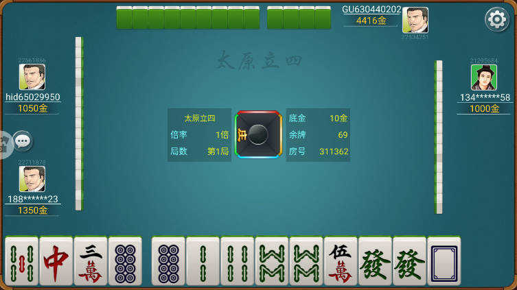 1、开局时每位玩家会获得四张竖立摆放的起始牌,这些牌仅在听牌阶段才可打出,且听牌时必须从这四张中选择一张进行出牌。这四张牌可以与其他九张手牌组成顺子、刻子、杠或将对,也可用于碰或杠操作。