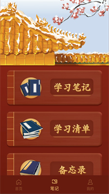 3、笔记栏有学习笔记、学习清单和备忘录。