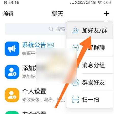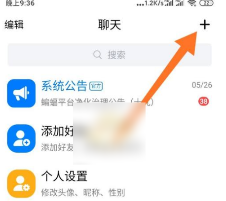 打开蝙蝠app,点击+图标按钮,点击加好友,添加好友即可。