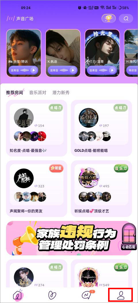 遇见你心动的声音~奶狗音、少年音、青叔音...小仙女喜欢的声音都能在广场里找到!点一点播放键就能试听,轻松捕捉优质男声,赶紧开启愉快的连麦新体验吧~