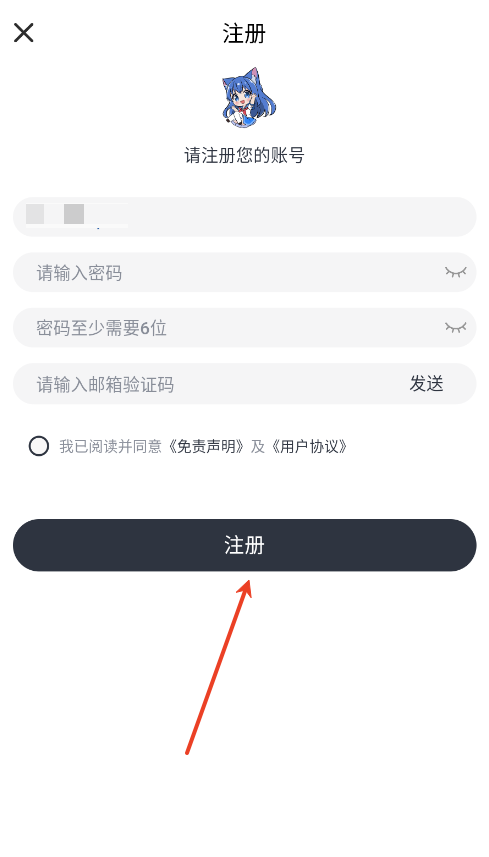 3.输入邮箱号,密码和验证码,点击【注册】就成功了。