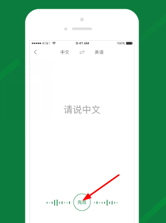 3、你就可以通过说话来对语言进行翻译,语音输入完成后点击“完成”。翻译结果就会出现。