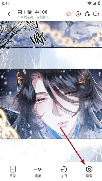 2、然后在阅读页面点击设置功能。