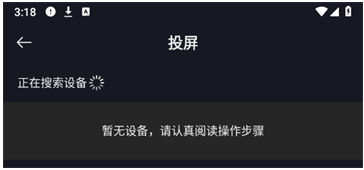 3、在上方设备列表中,选中投屏设备,即可开始投屏系统会自动搜索可投屏设备,请耐心等待。若检测不到设备,可能是设备不支持。