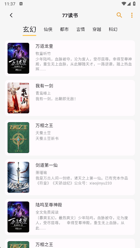 -------今年最火的玄幻修仙小说软件战天斗地无压力,凡人变仙神!点击下载即可开启一段奇幻修仙之旅!多重职业体系,自由选择修仙流派;极致特效打造超震撼的修真世界,在这些软件感受真实修仙刺激!