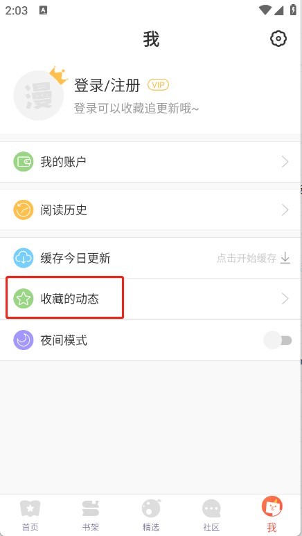 3、用户可以在我的页面点击“收藏的动态”,就能够查看收藏的漫画。