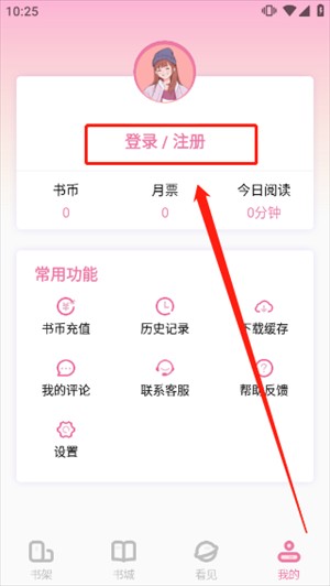 1、进入海棠小说阅读器软件主页中的“我的”点击头像即可注册登录