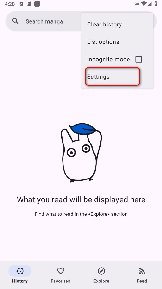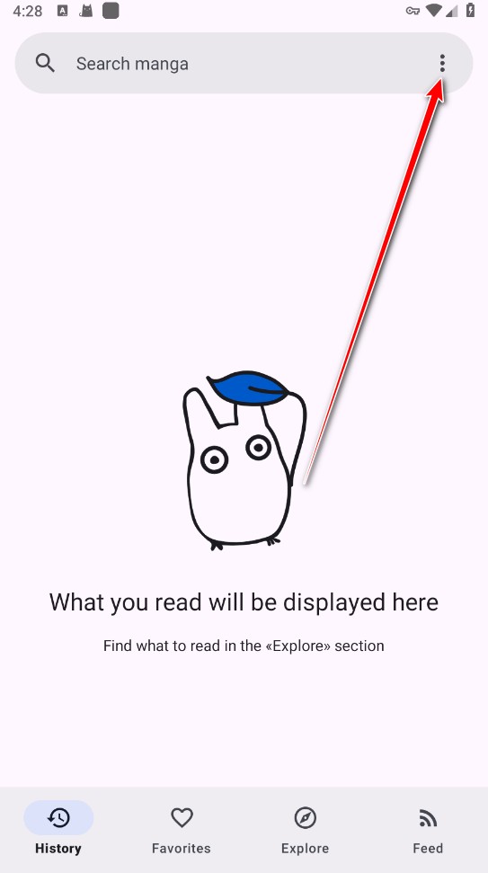 1、打开进入Kotatsu漫画阅读器,在搜索框点击三个点